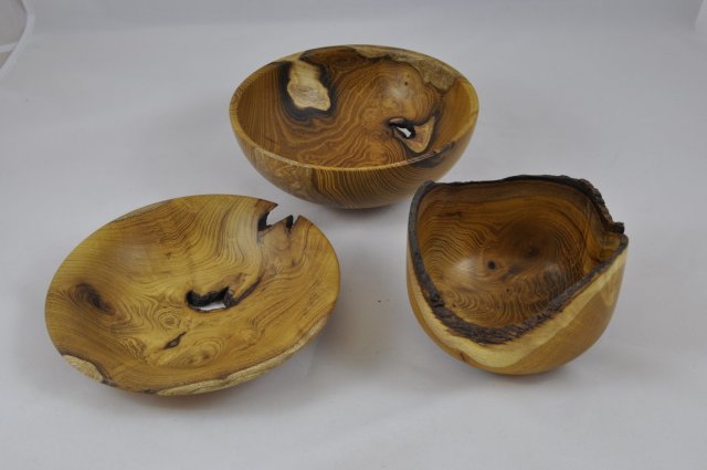 Natural edge bowls in Laburnum by Nick Simpson, Wo...