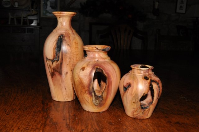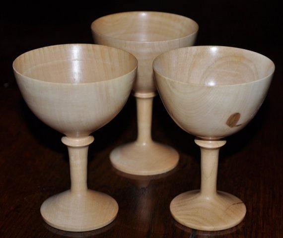 3 goblets in horse chestnut 100mm by Nick Simpson,...