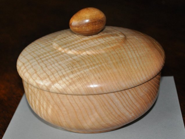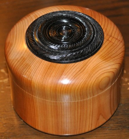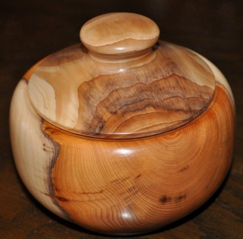 lidded pot in yew 120mm by Nick Simpson, Woodturne...