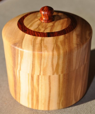 lidded box olive wood with cocobolo inlay 60 x 40...